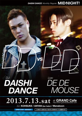『DD対DE DE』初対決が実現 IN 大阪! レギュラーDJであるDAISHI DANCEとグランカフェ初登場のDE DE MOUSEの競演が決定。ステージ上で何が繰り広げられるか、今から目が離せない!夏真っ盛り海の日前に皆で大騒ぎしましょう!