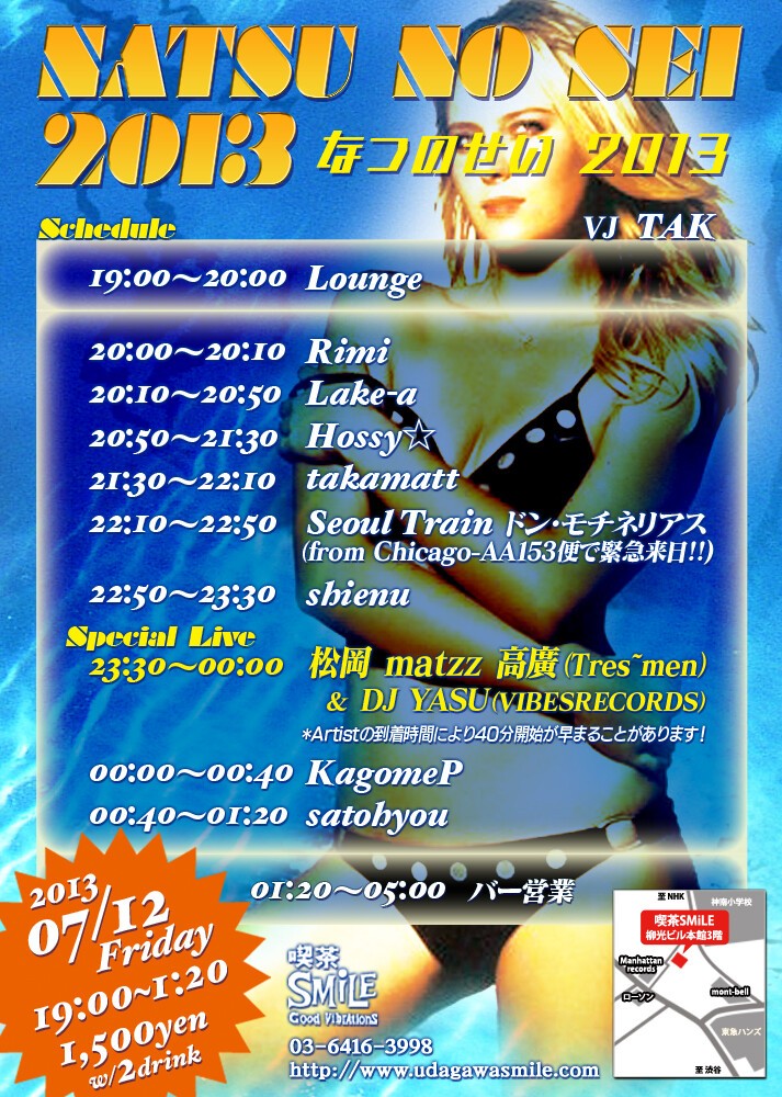 7/12(金) 19:00~26:00 Fee:1500yen with 2drink Tickets