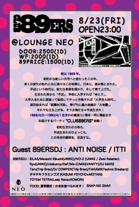 1989/4/2〜1990/4/1生まれの最強DJ陣を一同に集結させお届けするパーティ"CLUB89ERS"始動!
