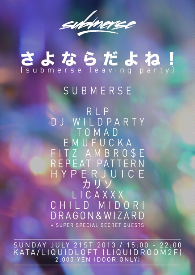 約一年半に及ぶ日本滞在を終え、UKに帰国するDJ/プロデューサー submerseのお別れ会。Maltine Recordsのtomadらインターネット界隈のアーティストや彼と親交の深いビートメイカーがずらりとそろった豪華なラインナップ。彼の新しい門出をお祝いしましょう!