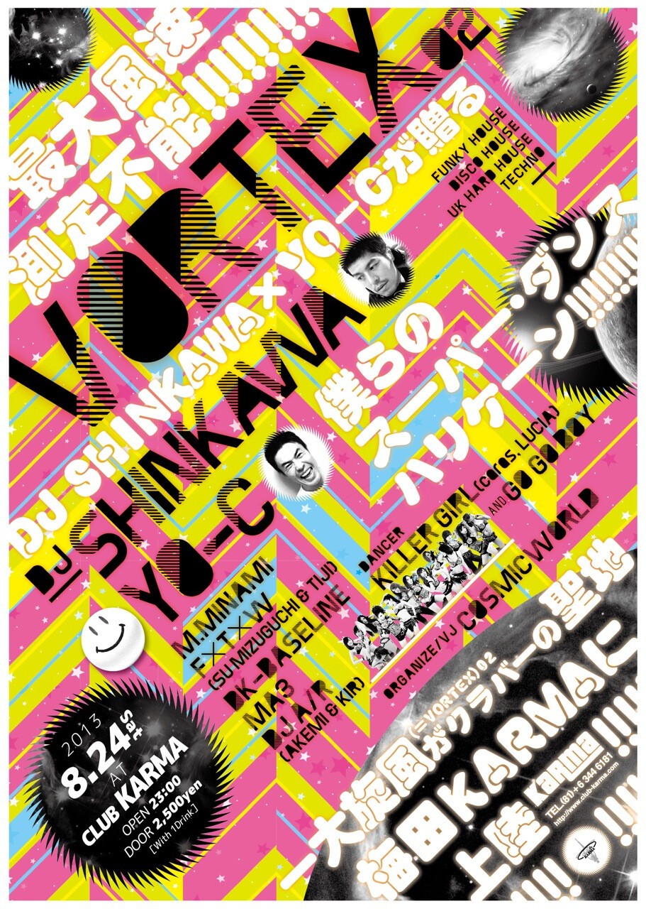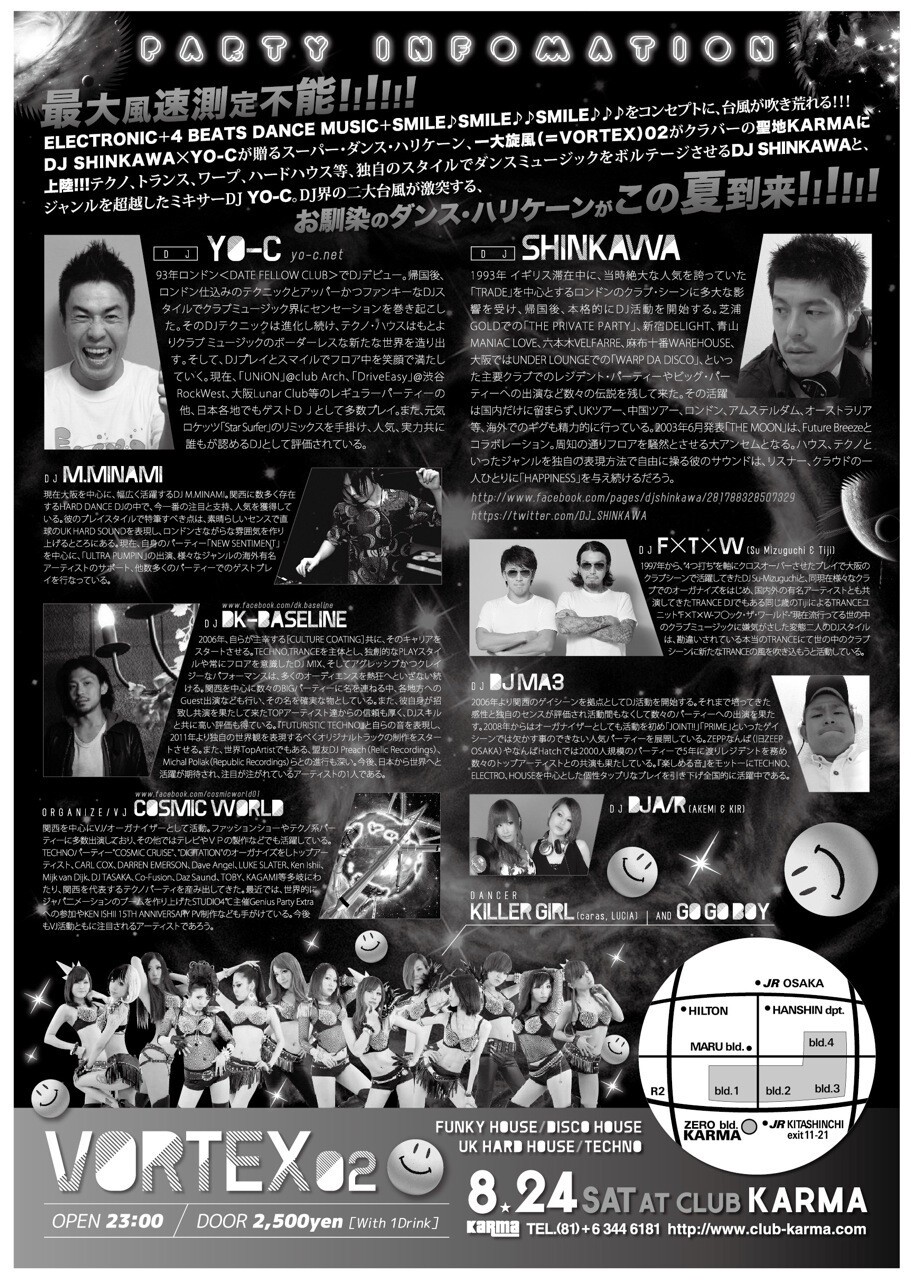最大風速“測定不能”!!DJ SHINKAWA×YO-Cが贈る、一大旋風(=VORTEX)02がクラバーの聖地KARMAに上陸!