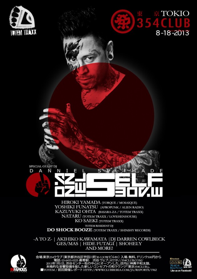 世界のトップアーティストがプレイするレーベル"Infamous Recordings"のオーナー、スペイン・マジョルカの奇才、DANNIEL SELFMADEが初来日を果たす。DJ CHUS率いるテックハウスレーベル"Stereo Production"や"Defected"を筆頭に、主要レーベルから楽曲やRemixを提供し続けている。日本国内発のレーベル、"TORQUE"と"TOTEM TRAXX"が全面サポートし、LD&Kが仕掛ける「神輿ラウンジ」その名も「東京354CLUB」で来日を盛大に祝う。また、TOTEM TRAXXからはDANNIEL SELFMADE渾身の新作"Euphoria EP"のリリースが決定している。