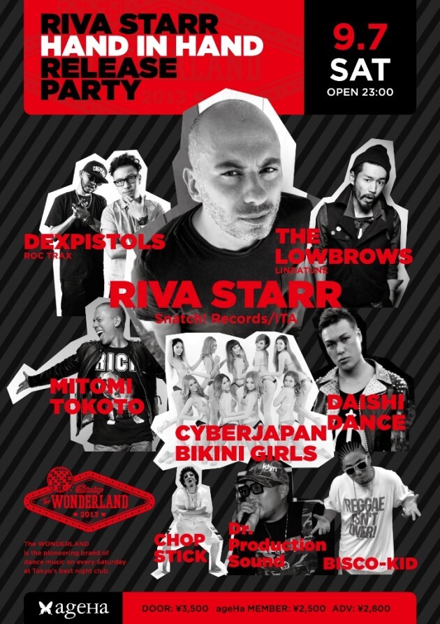 世界的なトッププロデューサー/DJとなったRIVA STARRがセカンドアルバム『HAND IN HAND』をリリース。その発売を記念し、ageHaでリリースパーティーを開催!イビザではSwedish House Mafiaのオープニングを、アメリカではTiëstoのオープニングを務め、Fatboy Slimに「クレイジーでセクシーでクール」と言わしめた、彼の独創的な世界観を是非体験して欲しい!