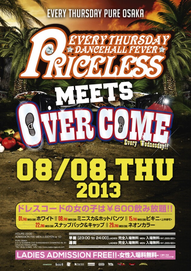 「PRICELESS」は、REALなREGGAE DANCEHALL MUSICはもちろん、HIP HOPやR&B、SOUL等も幅広くPALY!!全ての人達が楽しめる空間です。