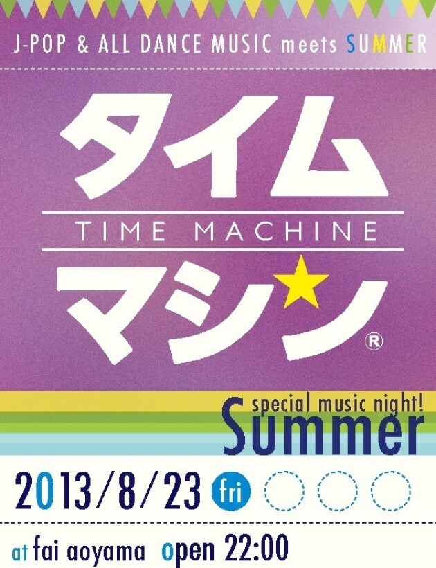 ALLグッドダンスミュージックとJ-POPの融合でおなじみのPARTY aka 大人の文化祭【タイムマシン】を8/23(fri)@fai aoymaにて開催!!