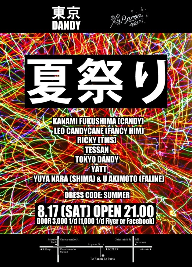 2013神宮外苑花火大会、勝手にアフターパーティー!!19時半から1時間、1万発以上の花火が大都会の夜空を彩ったあと、ここLe Baron de Parisでドカーンと、さらに艶やかで華やかなパーティーを開催します。当夜はTOKYO DANDYの2人がDJとして登場するだけでなく、パーティーフォトグラファーとしてフロアに潜入。大人な夏の思い出作りに是非ともご参加下さい!浴衣のお客様、大歓迎!