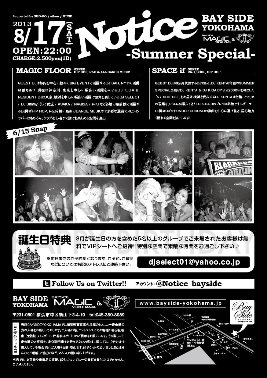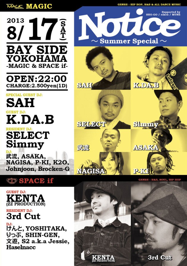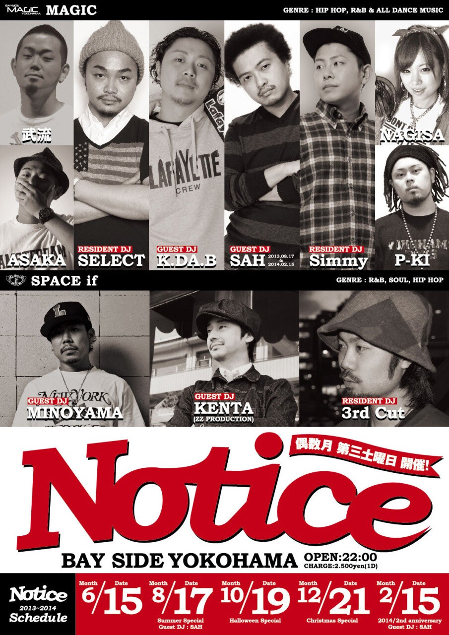 横浜最大級のクラブ -BAYSIDE YOKOHAMA- のMAGICとSPACE ifのフロアにて偶数月第3土曜日に開催の大人気DJ ONLY PARTY 『Notice』!!