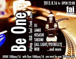 この日ばかりは日常を忘れ、音楽が時代を超えて僕らの耳へ、その時は友人の枠を超えてみんなで肩を組み、その為にDJ達は県境を超えて集まり、色んなものを超えて全てが1になるような楽しい一夜に。『Be One』