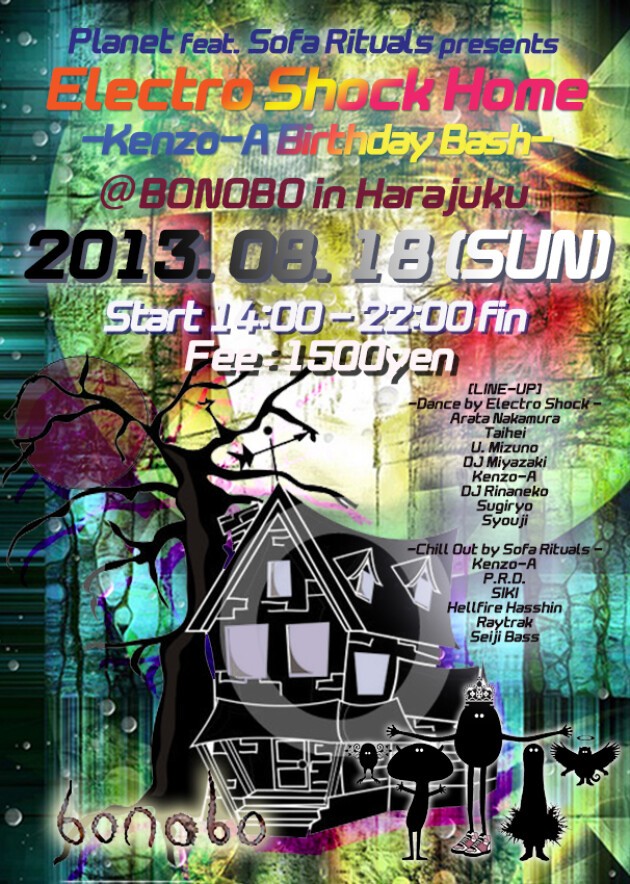 Our team "Planet" will make a party at Bonobo in Harajuku at 8/18 on Sunday!!