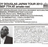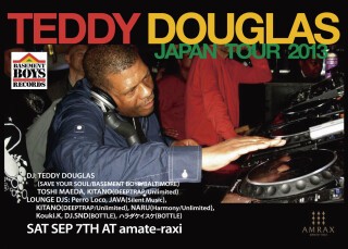 伝説のプロデューサー・チーム、ベースメントボーイズのリーダーとしても有名なTEDDY DOUGLASが約5年振りにamate-raxiに帰還!!誰もが一度は耳にしたことがあるだろう数々の名曲を発表し続け、ソウルフルでエネルギッシュなハウスミュージックでフロアを熱狂させる大御所の再来日、お見逃し無く!