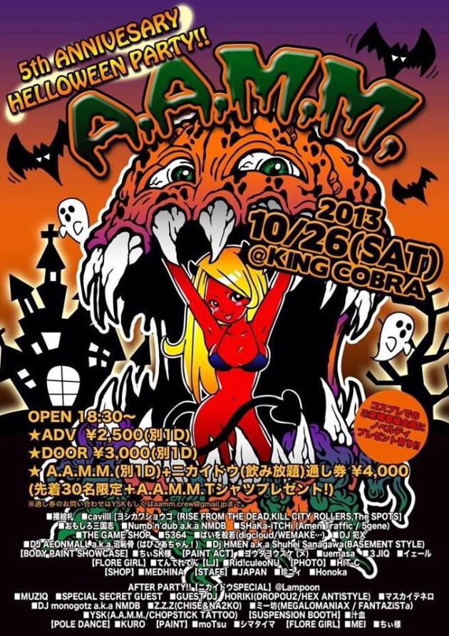 そして、この度のA.A.M.M.も大阪アメリカ村がバケツの水をひっくり返した様な大騒ぎのHELLOWEEN NIGHT!!