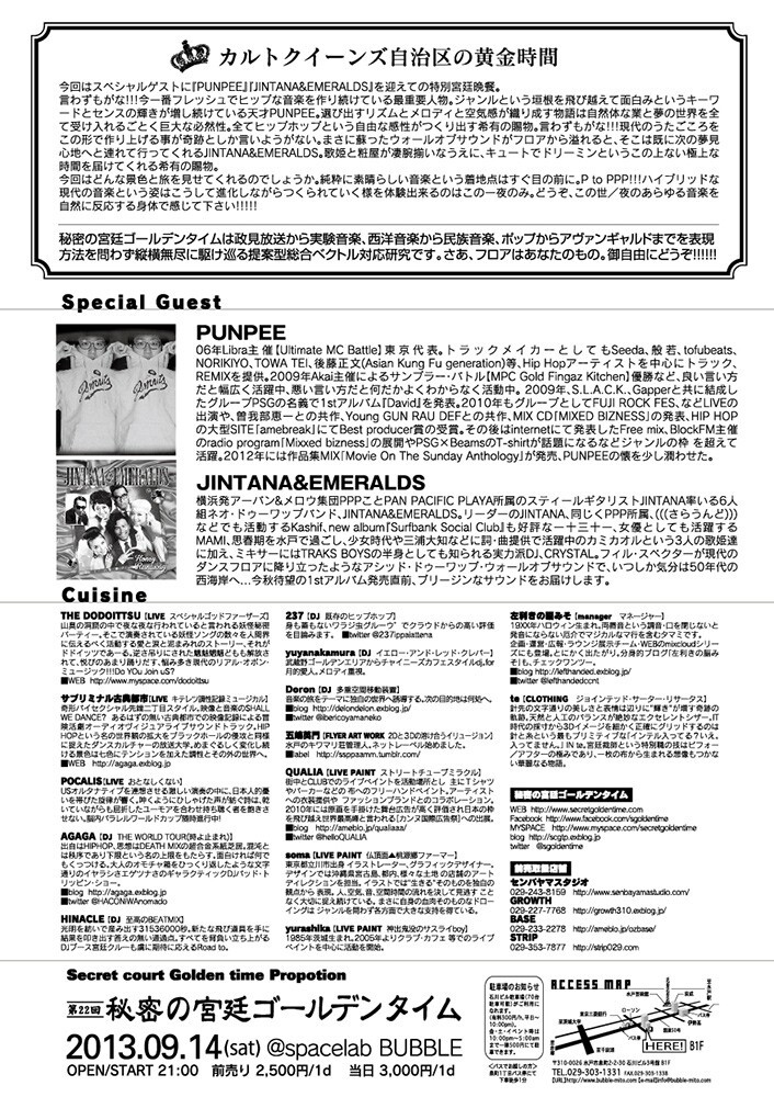 今回はスペシャルゲストに『PUNPEE』『JINTANA&EMERALDS』を迎えての特別宮廷晩餐。
