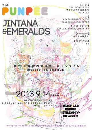 横浜発アーバン&メロウ集団PPPことPAN PACIFIC PLAYA所属のスティールギタリストJINTANA率いる6人組ネオ・ドゥーワップバンド、JINTANA&EMERALDS。リーダーのJINTANA、同じくPPP所属、(((さらうんど)))などでも活動するKashif、 new album『Surfbank Social Club』も好評な 一十三十一、女優としても活躍するMAMI、思春期を水戸で過ごし、少女時代や三浦大知などに詞・曲提供で活躍中のカミカオルという3人の歌姫達に加え、ミキサーにはTRAKS BOYSの半身としても知られる実力派DJ、CRYSTAL。フィル・スペクターが現代のダンスフロアに降り立ったようなアシッド・ドゥーワップ・ウォールオブサウンドで、いつしか気分は50年代の西海岸へ...今秋待望の1stアルバム発売直前、ブリージンなサウンドをお届けします。