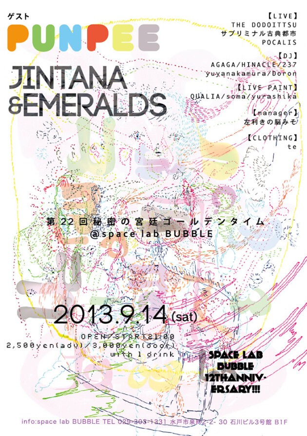 ハイブリッドな現代の音楽という姿はこうして進化しながらつくられていく様を体験出来るのはこの一夜のみ。どうぞ、この世/夜のあらゆる音楽を自然に反応する身体で感じて下さい!!!!!