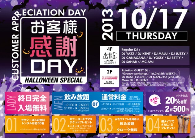 ◆女性コスプレ着用者は、21時まで完全入場無料+飲み放題+クローク無料!!