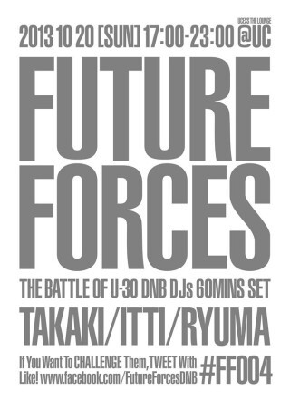 第4回目の FUTURE FORCES が 10月20日(日)17:00 から開催決定!3回目まで、レギュラー参戦していた YMASA は海外武者修行中につき、今回から DJ Ryuma が参戦。06S でも活躍中の ITTI と DMC JAPAN 2013 ファイナリストの DJ TAKAKI も引き続き参加。