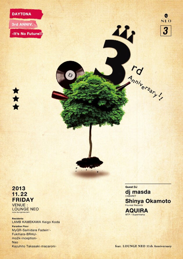 11月21日(木)~11月23日(土)の3日間『LOUNGE NEO 11th Anniversary!!!』と題して誕生日パーティーを開催する。
