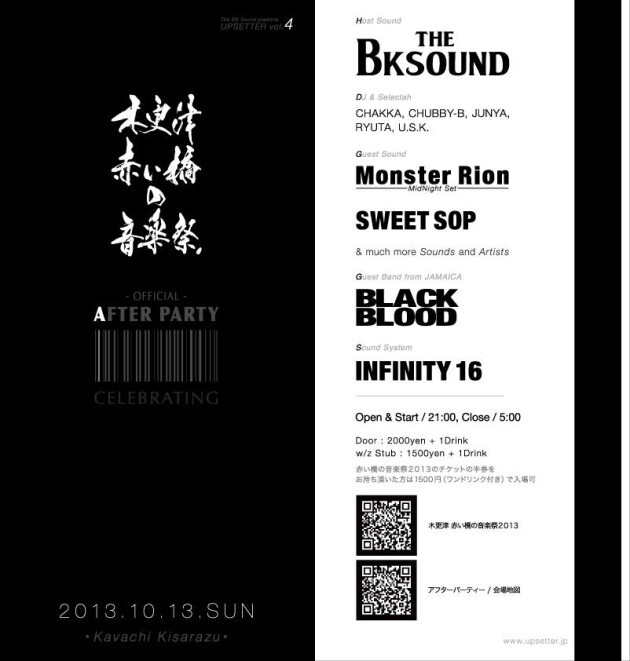 今回で4回目の開催となるアップセッターは「木更津 赤い橋の音楽祭2013(http://p.tl/SOfd)」のアフターパーティー! 豪華ゲスト陣に加え、怒濤のサプライズもアリ!? 最後まで何が起こるかわからない、危ない、夜!!