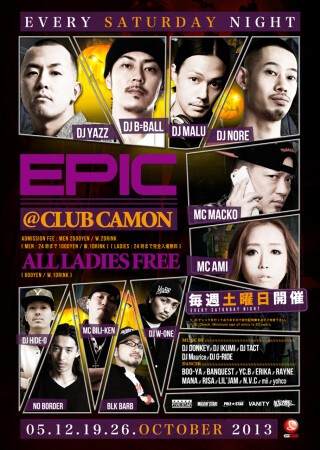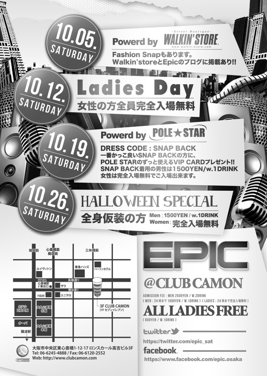 【毎週土曜エピック】10/26(土)☆今夜はハロウィンSP!!全身仮装の方はハロウィン特典あり!!!!土曜カモンは毎週満員御礼の鉄板ビッグパーティー『EPIC』★★関西を代表する豪華DJ陣が毎週ローテーションで登場☆ジャンルはHIP HOP, R&B, REGGAE, EDM, TOP40など幅広い選曲でお届け☆土曜でも女性は終日入場無料なので安心してお洒落して遊びに来て下さい★★
