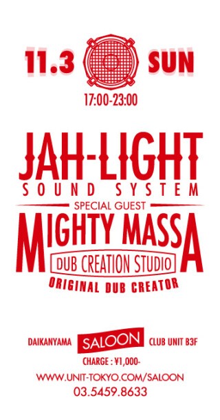 毎月第一日曜の夕方、ここ代官山SALOONを低音で揺るがす *Jah-Light Sound System*。