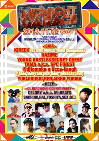 “MIDNIGHT GARAGE” featured SHINGO☆NISHINARI, BENCH x STOCKMAN and other interesting acts in August and showed its originality amongst various hip hop parties at VISION. Because of its unique-ness, there is very loyal following. Even Tokyo experienced record breaking rain, they had many audiences and created amazing vibes. It became legendary. We don’t know the line up at this point, but I am sure they will feature great artists. Stay Tuned!