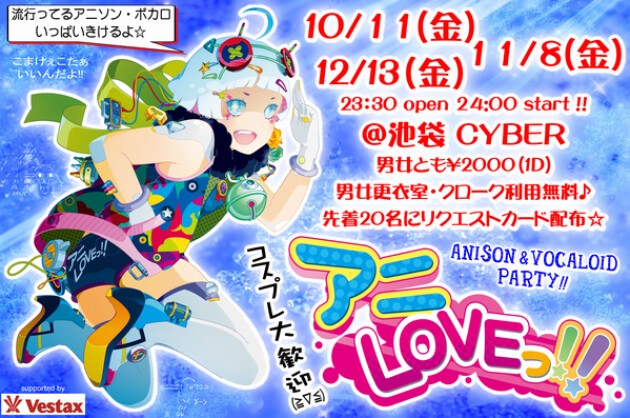 先着20名にリクエストカード配布!アニソン初心者・クラブ初心者も楽しめます☆