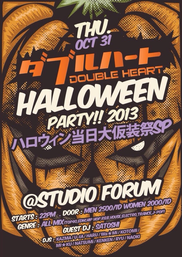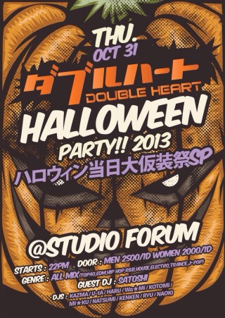 今夜はHalloween当日ということで土曜日の大人気PARTY「ダブルハート」のALL DJ'Sによる1夜限りのSpecial Party!