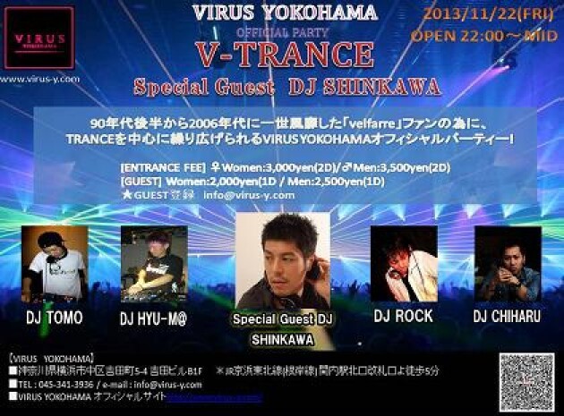90年代後半から2006年代に一世風靡したvelfarreのファンの為に、TRANCEを中心に繰り広げられるVIRUS YOKOHAMAオフィシャルパーティー!