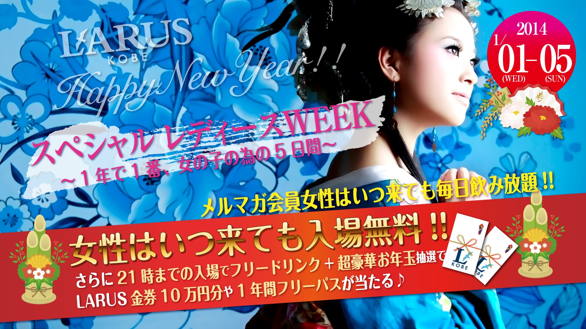 LARUS KOBEは、22時までのご入場で、「毎日 全員入場無料!!」