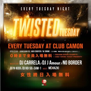 【毎週火曜ツイチュー】人気沸騰中!!火曜カモンはSTRAIGHT HIP HOP PARTY『TWISTED TUESDAY』☆☆毎週豪華LIVE&DANCERをゲストに迎えて平日の大阪クラブシーンをHIP HOPで巻き込み中!!!!24時まで全員入場無料&女性は1Dプレゼント★★