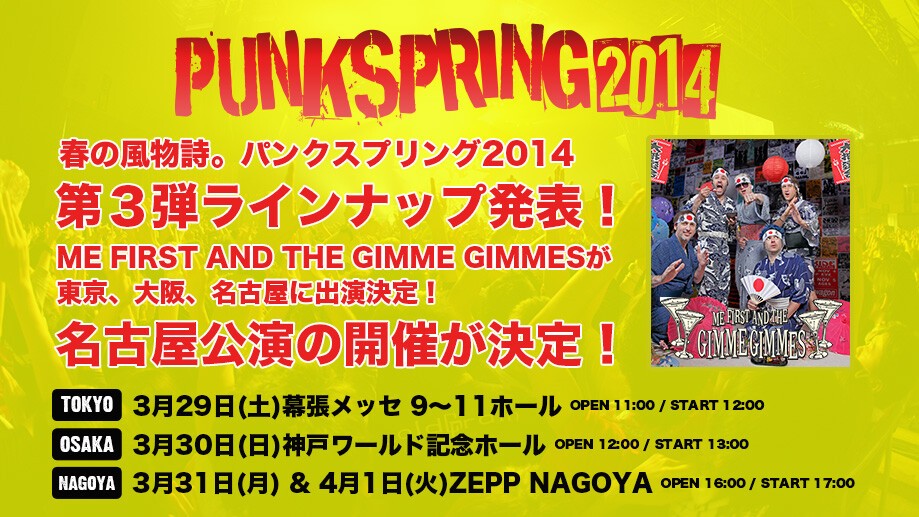PUNKSPRING 2014の開催が決定し、第1弾ラインアップにBad Religion、The Hives、coldrain、The Fratellis、SiM、SNUFF計6組が決定。