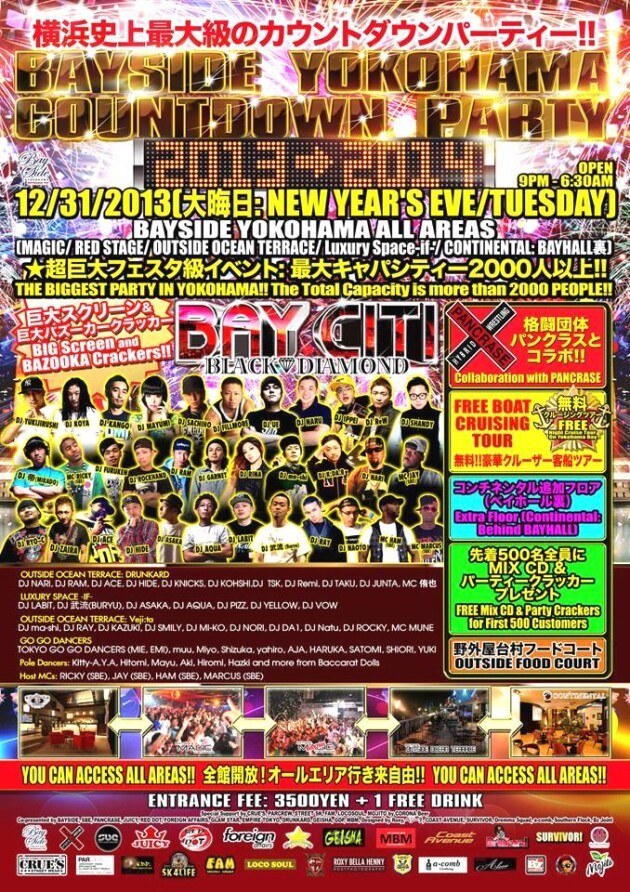 THE BIGGEST COUNTDOWN PARTY!! BAYSIDE Yokohama is Huge and capable of holding over 2000 people. "BAYSIDE YOKOHAMA COUNTDOWN 2013-2014: BAY CITI” will be held on 12/31 (NEW YEAR'S EVE)!!