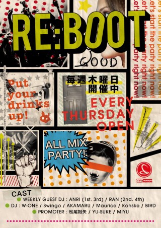 【毎週木曜モクリブ】話題沸騰の木曜カモンはALL MIX PARTY『Re:BOOT [リブート]』☆☆24時まで全員入場無料&女性は1Dプレゼント★★24時以降もSNS割で超お得☆☆