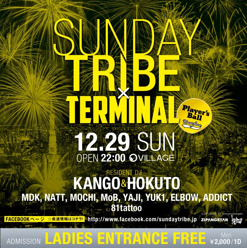 ★★0:30迄にご入場の方限定!DJ HOKUTOがMIXするSUNDAY TRIBE MIX CDをプレゼント!★★