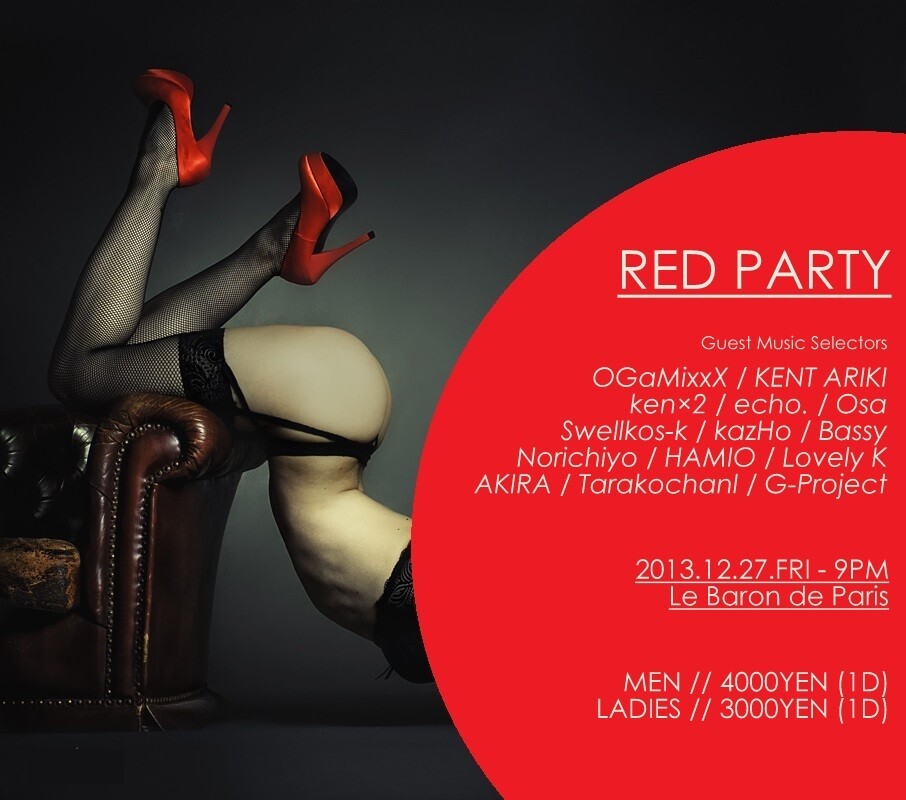 エンターテイメントプロデューサーのOgamixxxと、世界各国で開催されているモンスターパーティーFrench Tuesdayで初の日本人DJとして香港を舞台にレデントDJを務めたARIKI KENTを筆頭に、ラグジュアリーの骨頂を体現するニューパーティーRED PARTYが今夜Le Baron de Parisで花開く!Don’t miss it!
