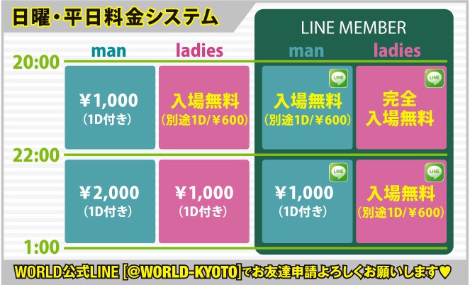 LINEメンバー女性 入場無料(別途1D/¥600)