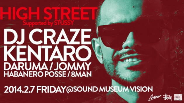 「大人のストリート感」を標榜し、クオリティの高いライヴやDJのショーケースでオーディエンスの感性を刺激するパーティ“HIGH STREET”。昨年4月以来の開催となる今回は、世界最高のスクラッチスキルを誇る天才ターンテーブリストをメインゲストに迎える。Crazeは、他を寄せつけない圧倒的なプレイで数々のDJコンペティションを制してきた正真正銘のトップスターである。中でも98から00年にかけて打ち立てたDMC World Championships3連覇という大偉業は、他の誰もたどり着けない金字塔といえるだろう。そのスキルでカニエ・ウェストのツアーDJとして世界を回り、日本でもFUJI ROCK2009 RED MARQUEEでDIPLO等とともにオーディエンスを熱狂させた。今回は日本人DMCチャンプのKENTAROも参戦。衝撃のパフォーマンスに震える一夜が幕を開ける。