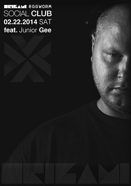 その幕開けとなる日にゲストとして迎えるのはUKよりJUNIOR GEE。ドイツの名門レーベル8bit,Plastic City、さらにはイギリスのCubismなどコアなレーベルからもコンスタントにリリースを重ね、アンダーグラウンドディープハウスシーンにおいて確固たる地位を築いている。DJ&プロデューサー業と同時にイギリスで自らクラブ経営をする彼ならではの現場の空気を瞬時に感じ、紡ぎだすプレイはまさに「ディープハウス職人」という言葉が当てはまる。フロアを知り尽くしたJunior Geeの卓越したセットの展開力とミックスセンスに"social club"の記念すべき第一回目のメインアクトを託す。さらにサブフロアORIGAMI GALLERYでは"SOCIAL CLUB"のもうひとつのコンセプト《ダウンビート》にこだわりNu Discoを軸とした選曲でグラスを片手にずっと踊っていられるような空間をお届けする。誤解を恐れず言うならば万人受けのしない「玄人好みのDeep House/Nu Disco」をあえていま東京のシーンに投下する。2/22(土)ORIGAMIでEGGWORMが踏み出す新たなチャレンジにぜひ注目してほしい。