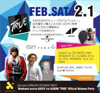 アヴィーチーのデビュー・アルバム「トゥルー」日本盤をご購入いただき、CDオビ持参頂いた方は入場無料☆