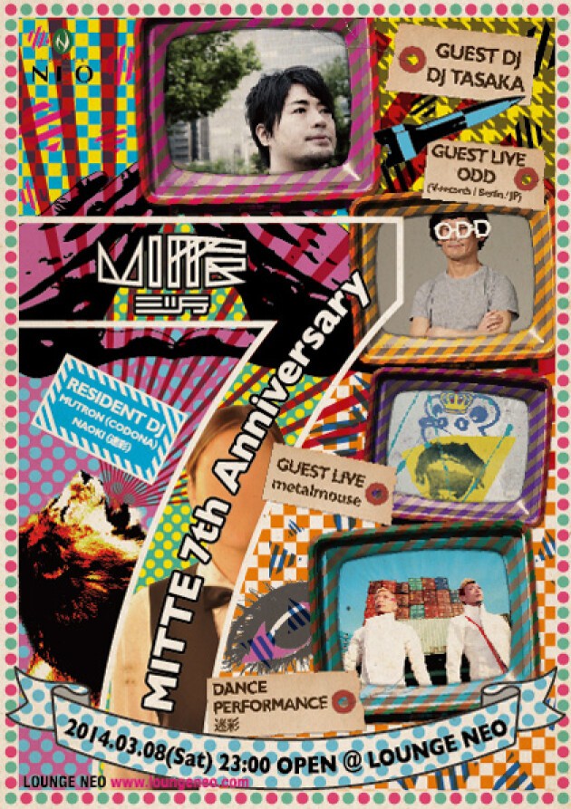 7th Anniversaryとなる今回は、日本を代表するテクノアーティストDJ TASAKAを筆頭に、独V-Recordsでの活動はもとより過去迷彩とのコラボレーションも話題となったODDがベルリンより3年振りの来日。加えてFUJI ROCK FESTIVALやWIREなど大型フェスへの出演を経て、今後の活動に注目の集まるmetalmouseと、アニバーサリーパーティにふさわしい豪華ラインナップ。