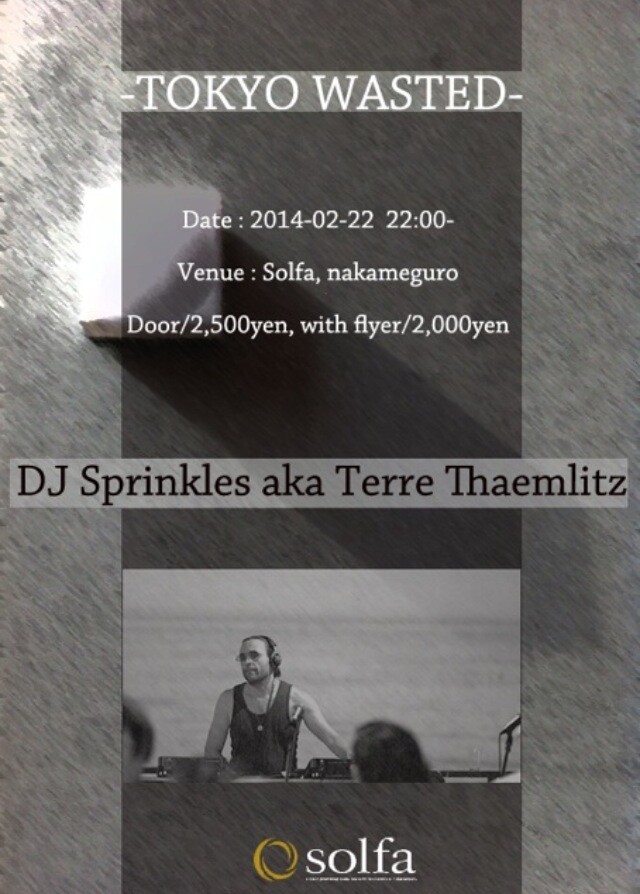 2014年最初の開催は、Comatonse Recordingsを主宰し、昨年のRAINBOW DISCO CLUBにも出演し、ドイツの鬼門レーベルPerlonの昨年のヒットチューンであるThe Moleのリリースのリミックスも手がけたことも記憶に新しい、DJ Sprinkles aka Terre Thaemlitz(テリー・テムリッツ)をSolfaに初召喚。さらに今回はLazerman corporationによる空間演出に加え、去年よりもアップデートされたレジデントDJの音像もぜひとも体感して欲しい。