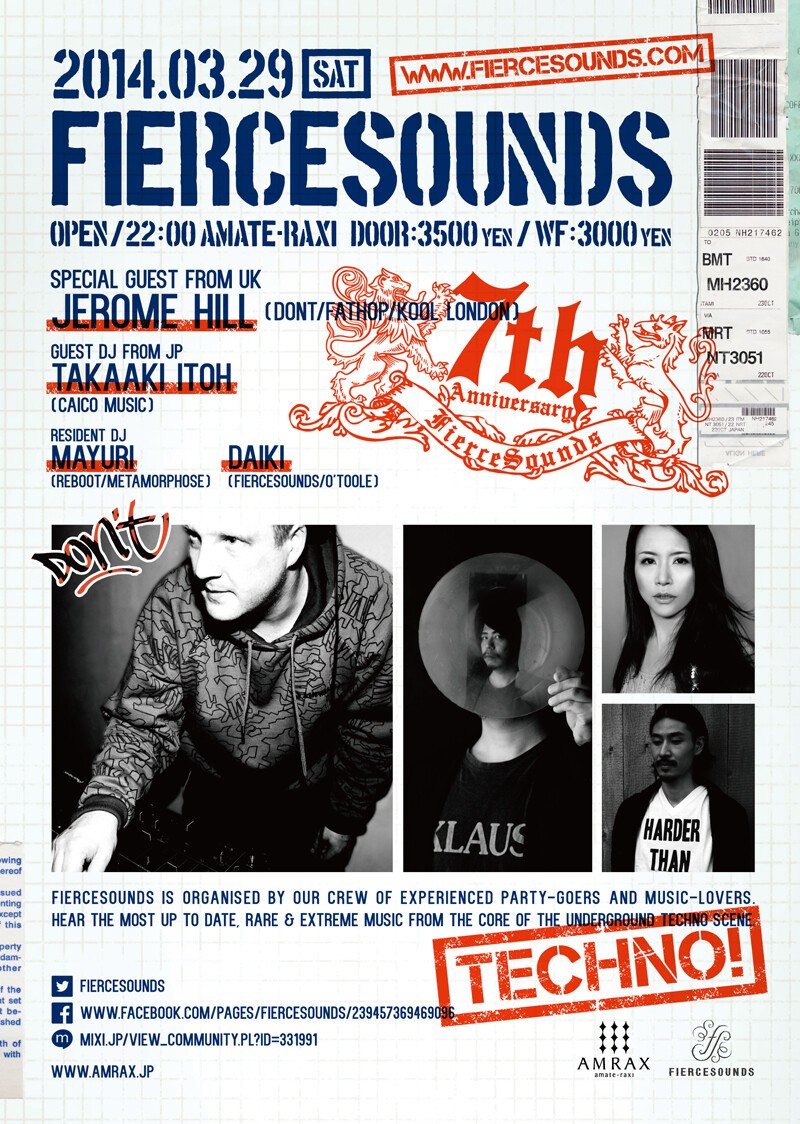 ロンドンと東京に拠点を置くFIERCEHEADSが ロンドン/ヨーロッパのREAL UNDERGROUND TECHNOを本場のスタイルのまま日本で再現するParty, FIERCESOUNDS.