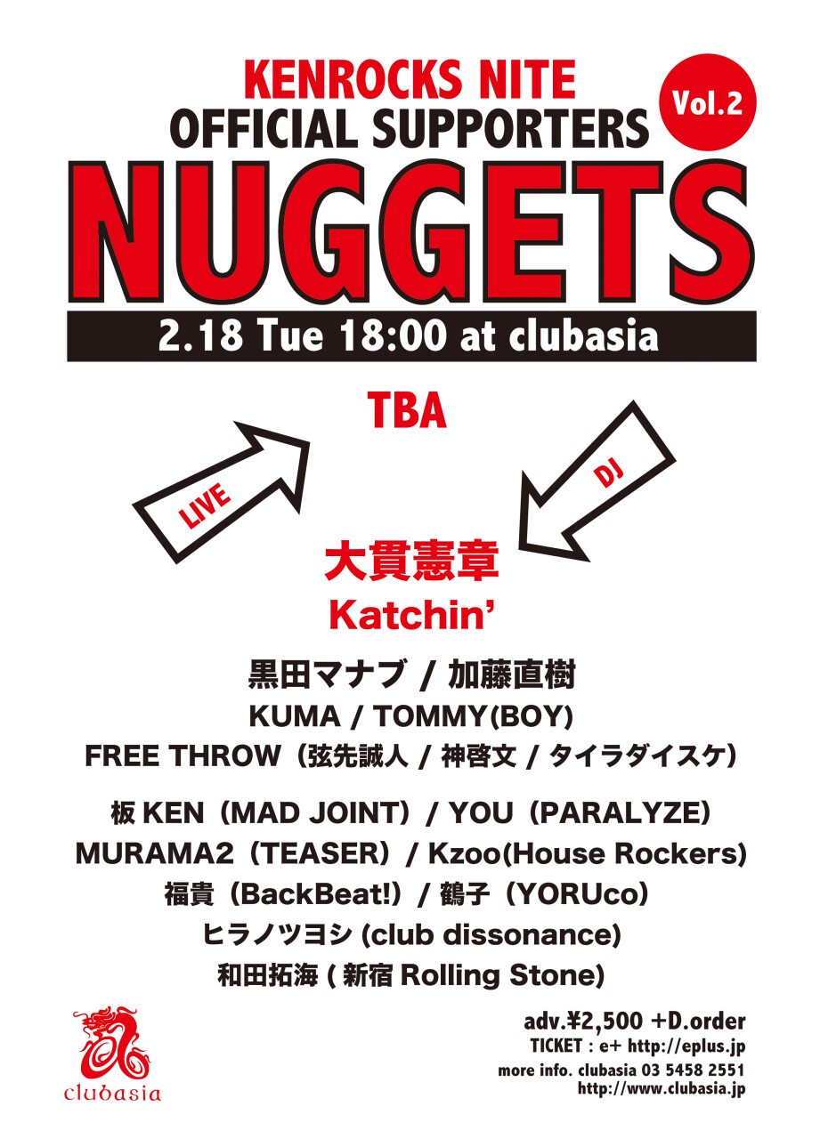 インターFMにて毎週土曜日23時より放送、大貫憲章とKatchin'がDJを勤めるKENROCKS NITE このROCKなFM番組のオフィシャルサポーターとして11月から隔月にてスタートしたROCK PARTYが NUGGETSだ TOKYOで人気を集めるバンドやこれから活躍が期待されるバンドを大貫憲章と黒田マナブがピックアップ 今のリアルなTOKYO ROCKシーンが感じられるGOOD PARTY!