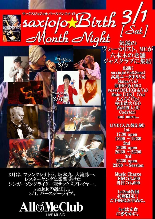 【saxjojo☆Birth Month Night】3/1(土)六本木All Of Me Club