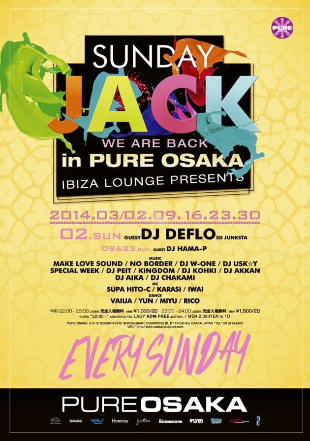 複数のビッグクラブで開催されてきたJACKがパワーアップして今回はCLUB PUREの毎週日曜日に開催が決定しました。