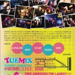 WOMB LOUNGE brings you “TUEMIX”, the weekly ALL MIX party held every Tuesday!!! Here is a party where you can enjoy the music known by all in a single night: featuring the music of EDM, now brewing up a storm not only in Asia but around the world, as well as Lady Gaga, Justin Bieber, Rihanna, Nicki Minaj, Avicii, Calvin Harris and many other artists that reached the TOP 40 chart!!! Come together now and turn up the weeknight with the most pumping music and the best of drinks!!! Free entrance for the ladies!