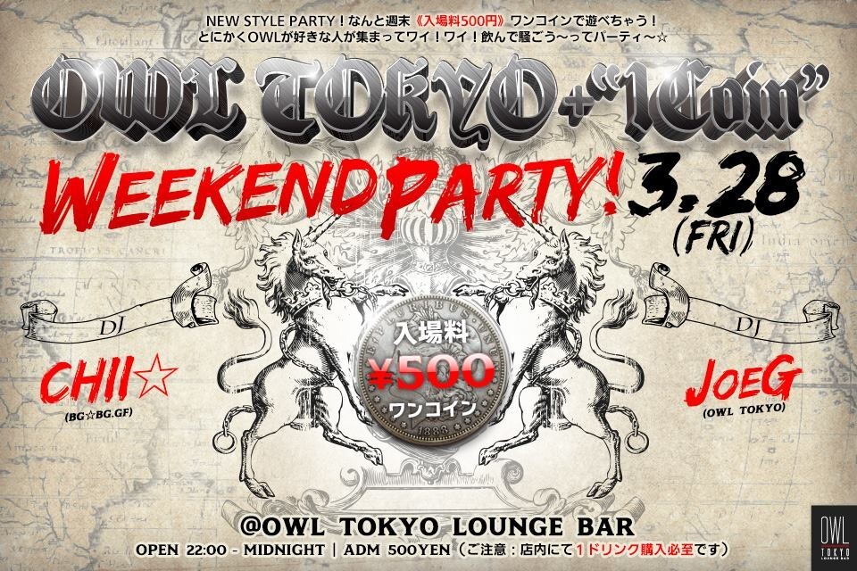 OWLTOKYO+”1Coin " WEEKEND PARTY!!
