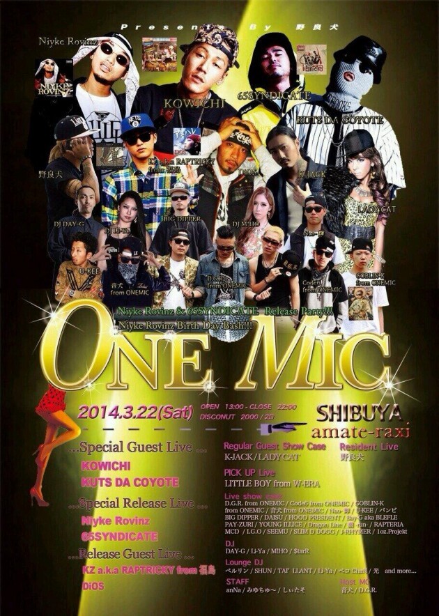 LIVE SHOW CASE: D.G.R. from ONEMIC, Code6 from ONEMIC, GOBLIN-K from ONEMIC, 音犬 from ONEMIC, Nao-輝, BIG , U-KEE, バンビ, BIG DIPPER, DAISU, HOOD PRESENT, Bay-G a.k.a BLEFLE, PAY-ZURI, YOUNG ILLICE, Dragon Line, 欄 -run-, RAPTERIA, MCD, I.G.O, SEEMU, SLIM D DOGG, J-RHYMER, l oz.Projekt