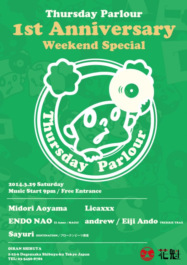 Midori Aoyamaがプロデュースする平日の音楽空間!英国王室の客間が語源の「パーラー」を現代風にアレンジして皆様をおもてなし。2013年の3月から始動したThursday Parlourも今月でついに1周年!!アニバーサリーを記念して、今月は週末の土曜日開催!そして桜の咲くこの時期に合わせて、しぶや花魁も本物の桜を使ったデコレーションを展開しています!
