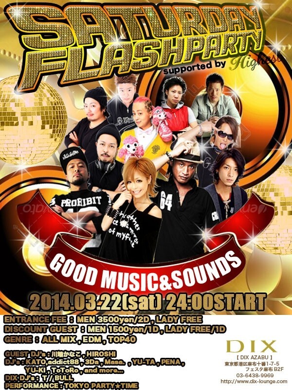 ジャンルはALL MIXで、DIXのレジデントDJと共に雑誌モデルなど各メディアで活躍中のDJ、ダンサー達が集まり、特別な一夜をお届けします!!